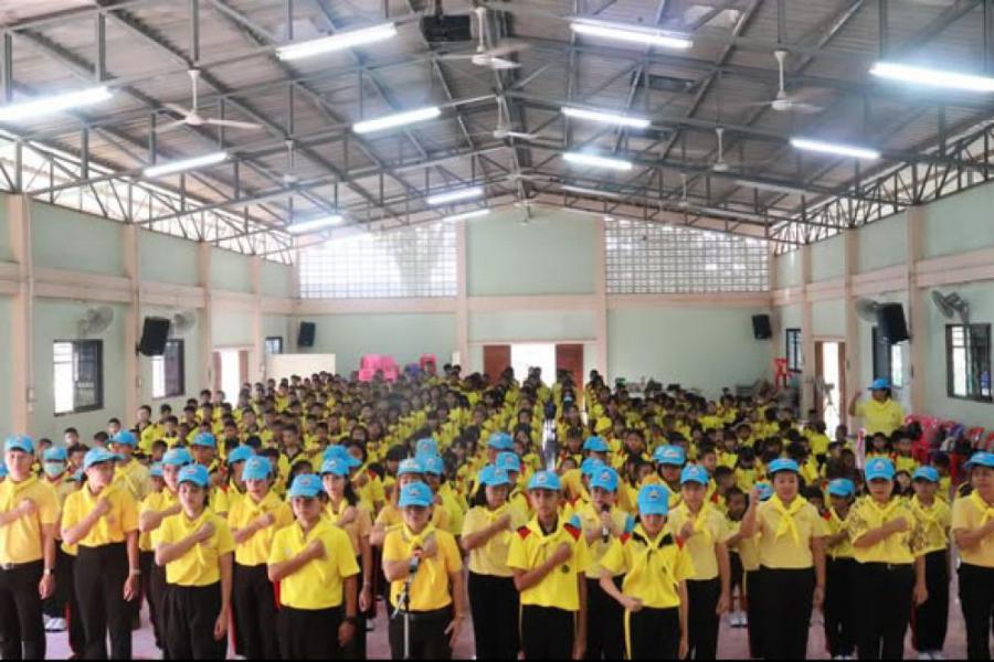 โรงเรียนบ้านแม่ระมาดราษฎร์บำรุง จัดพิธีถวายพานพุ่มเพื่อน้อมรำลึกในพระมหากรุณาธิคุณ เนื่องในวันคล้ายวันพระบรมราชสมภพของพระบาทสมเด็จพระบรมชนกาธิเบศรมหาภูมิพลอดุลยเดชมหาราช บรมนาถบพิตร วันชาติและวันพ่อแห