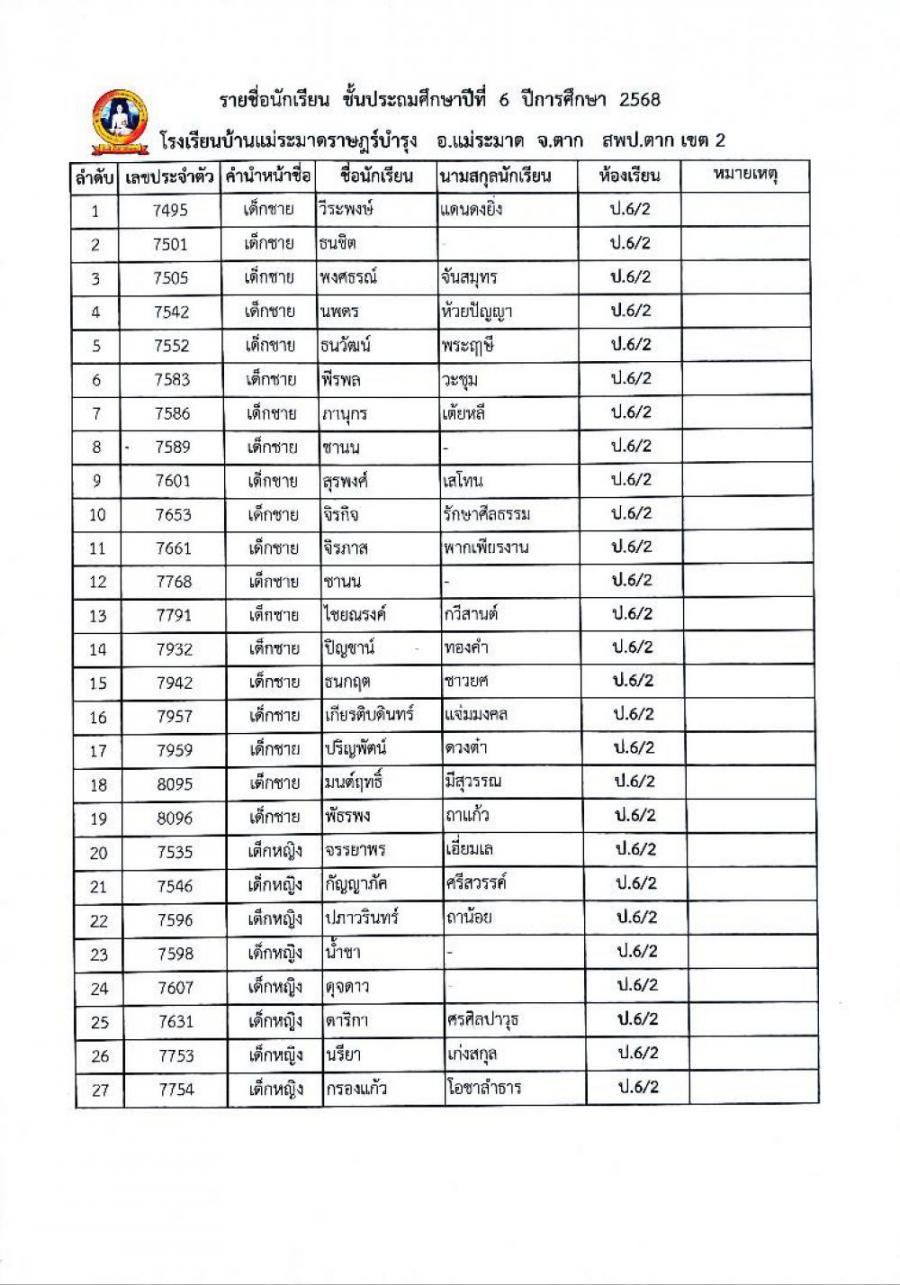 อาคารเรียนชั้นประถมศึกษาปีที่ 6/ ห้องภาษาอังกฤษ 231 หมู่ 4 ถ.โสภิตบรรณาลักษณ์ ต.แม่ระมาด อ.แม่ระมาด จ.ตาก 63140 สำนักงานเขตพื้นที่การศึกษาประถมศึกษา ตาก เขต 2