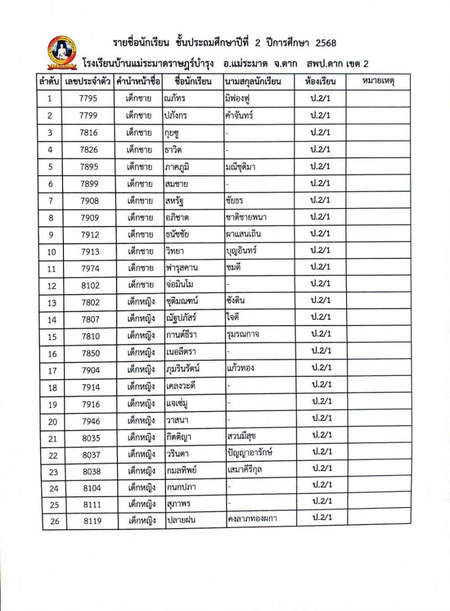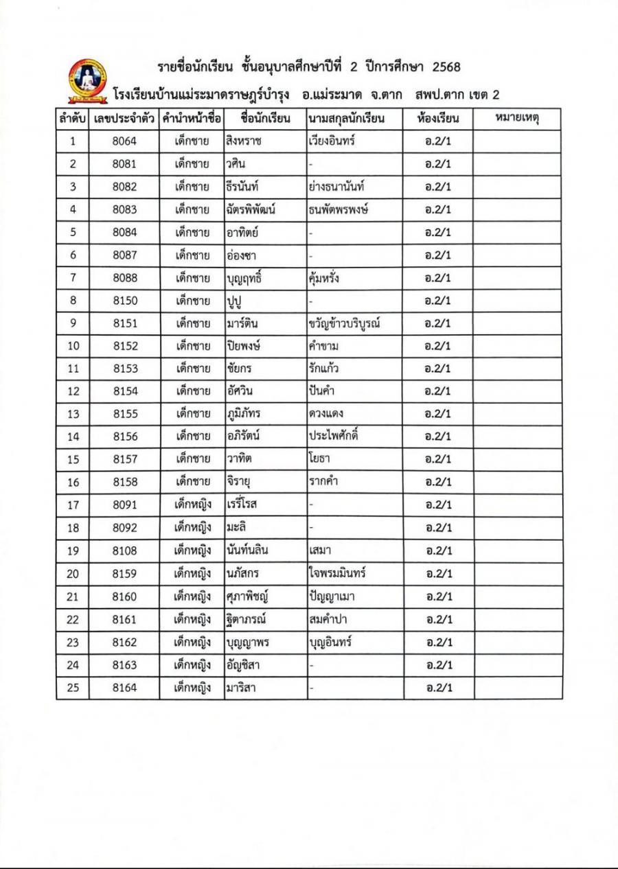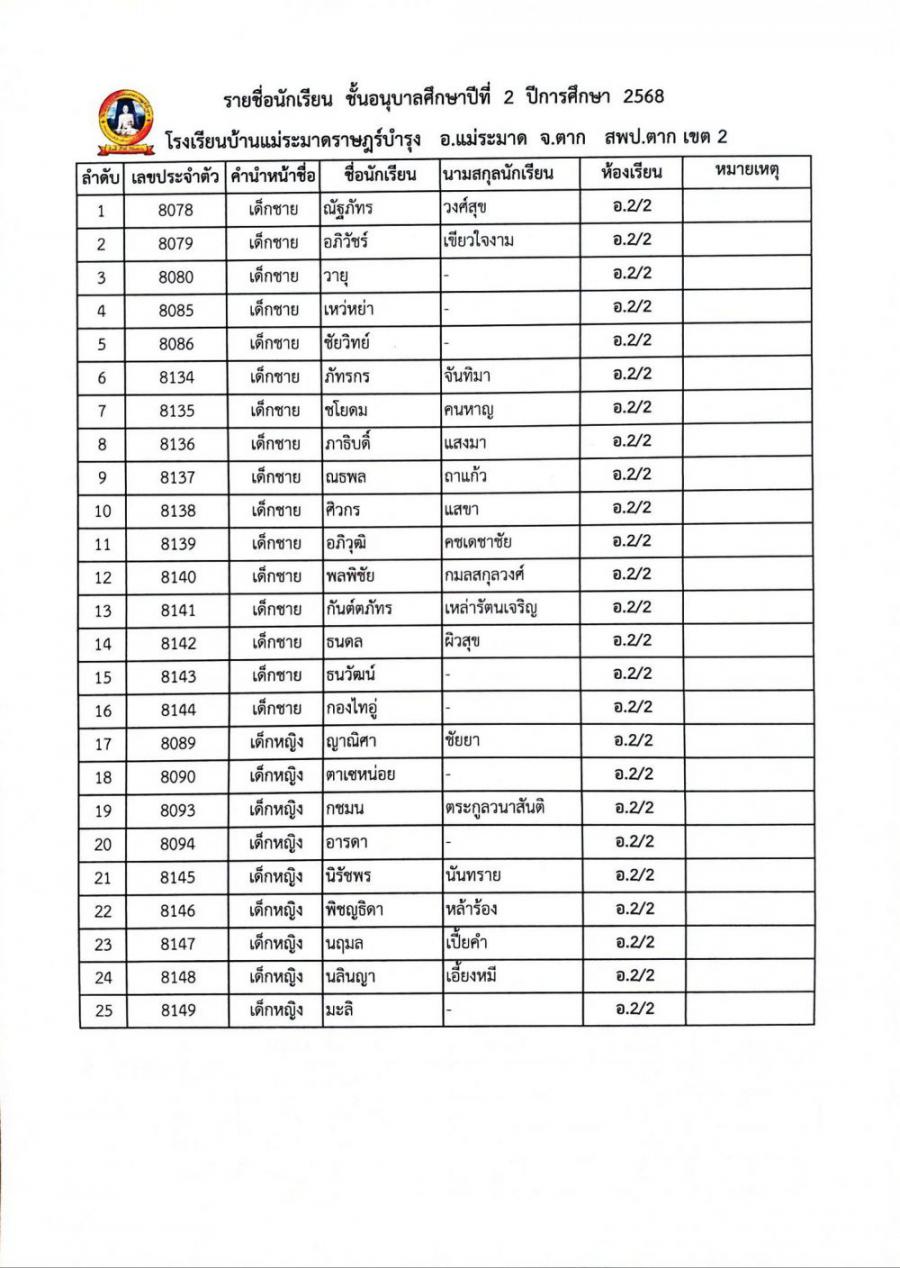 อาคารเรียนชั้นอนุบาล 2-3 231 หมู่ 4 ถ.โสภิตบรรณาลักษณ์ ต.แม่ระมาด อ.แม่ระมาด จ.ตาก 63140 สำนักงานเขตพื้นที่การศึกษาประถมศึกษา ตาก เขต 2